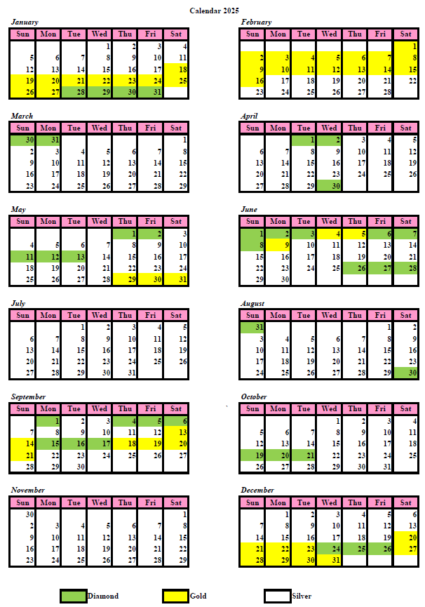 CALENDAR POINT CHART 2025
